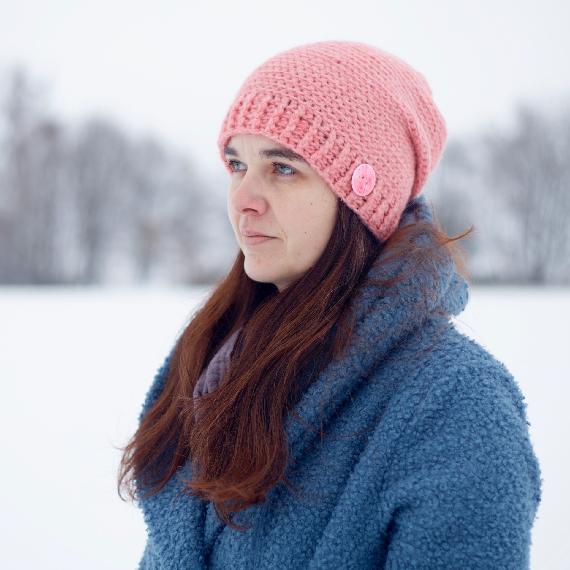 Háčkovaná čepice je doplněna knoflíkem, který jsem vyrobila z polymerové hmoty.