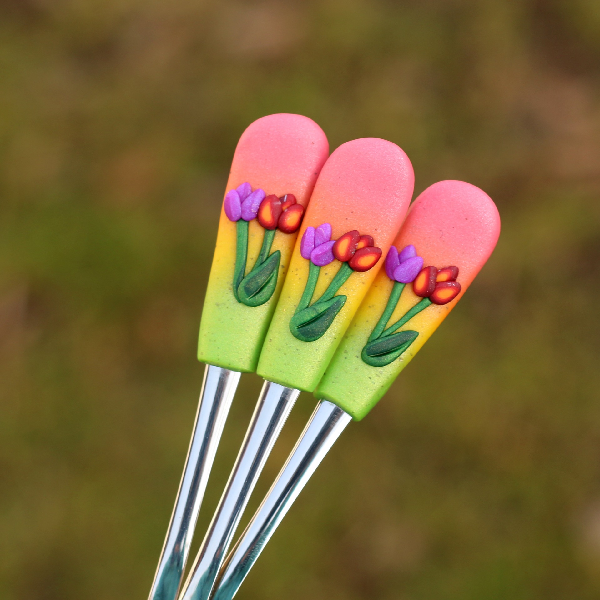 Lžičky z nerezové oceli dekorované polymerovou hmotou. Nemýt v myčce!! Lze mýt v ruce jakýmkoli prostředkem na nádobí.
