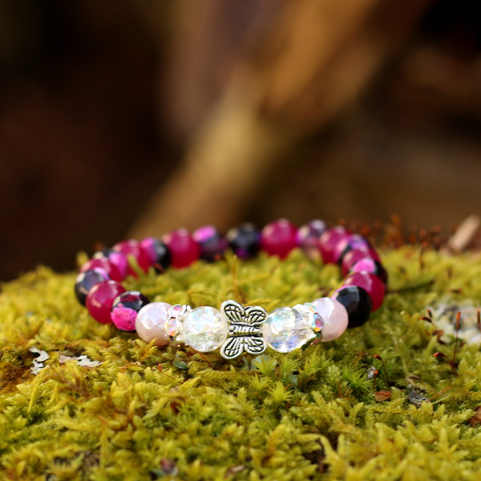 Náramek z minerálních kamenů navlečený na pružence. Vhodné na obvod ruky cca 18 cm.