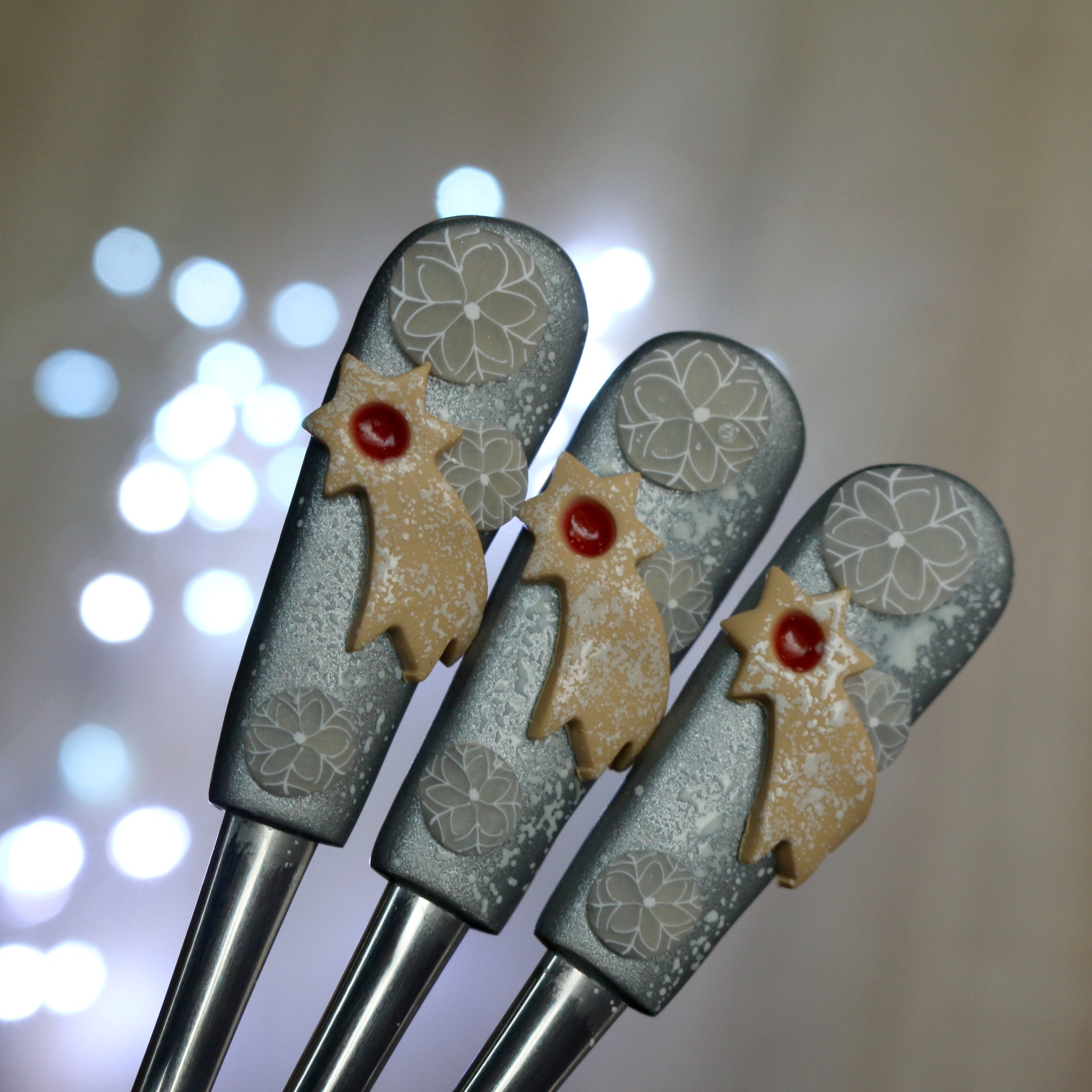 Lžičky z nerezové oceli dekorované polymerovou hmotou. Nemýt v myčce!! Lze mýt v ruce jakýmkoli prostředkem na nádobí.